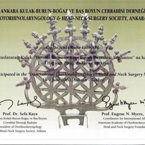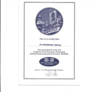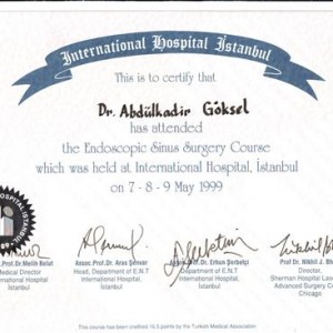 1999 The ‘’Endoscopic Sinus Surgery Course’’ International Hospital, Istanbul