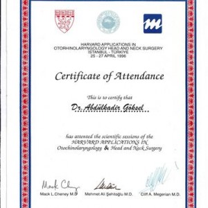 1996 Harward Applications in Otorhinolaryngology & Head and Neck Surgery, İstanbul