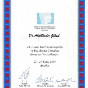 1997 24. National Otorhinolaryngology and Head and Neck Surgery Congress, Antalya